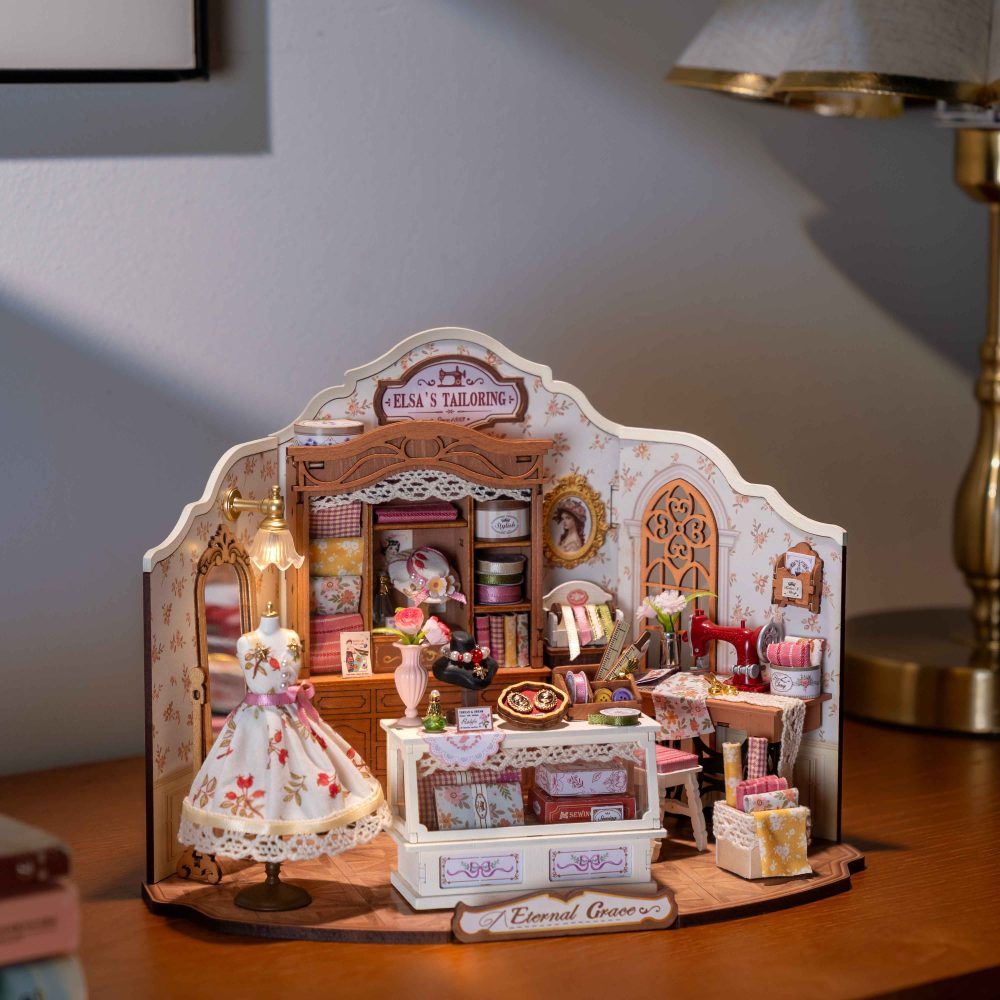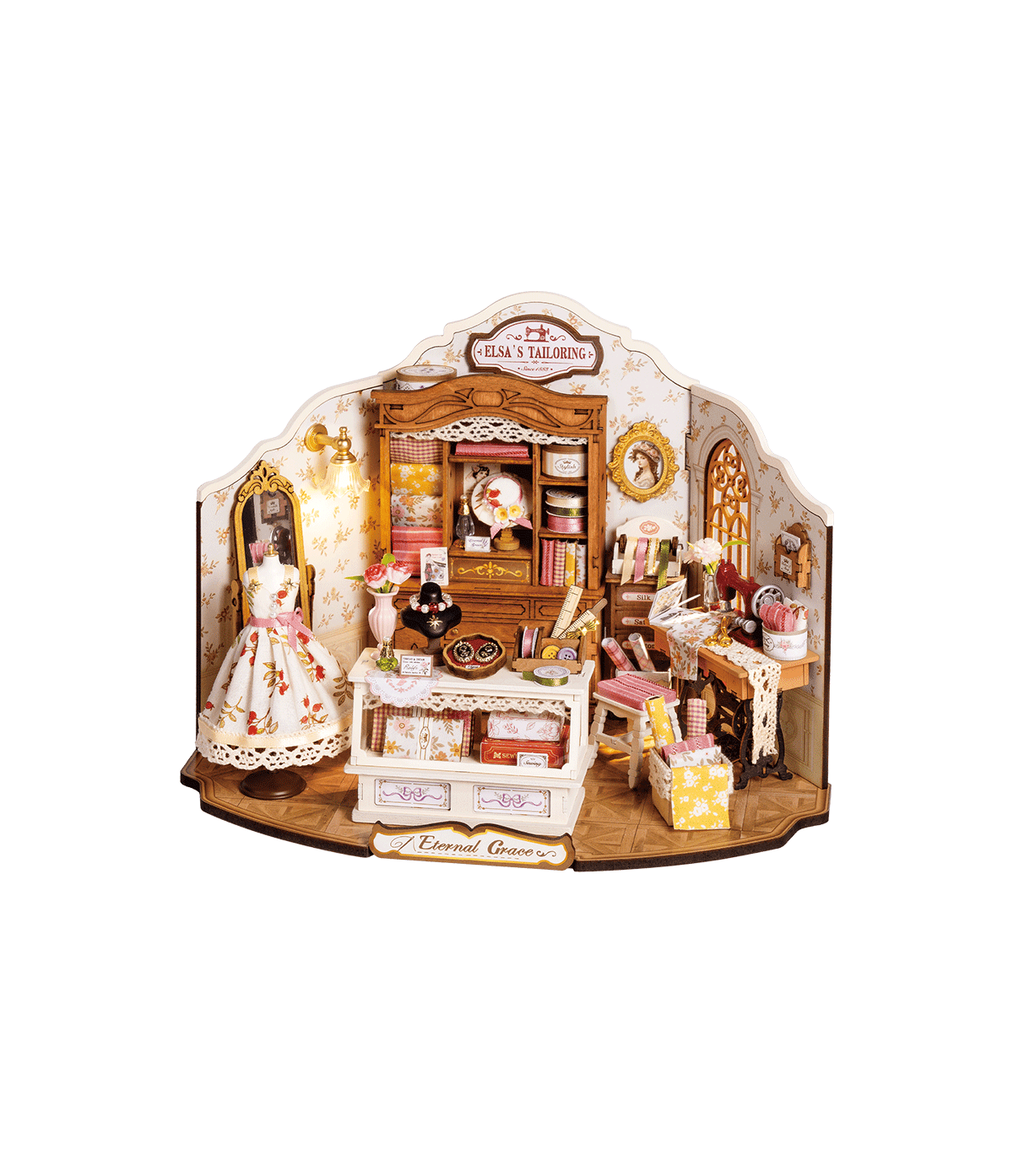 Разве вы не мечтаете о собственном ателье по пошиву одежды? Теперь это возможно с Elsa’s Tailoring! Эта миниатюрная мастерская дизайна воссоздает атмосферу французской винтажной швейной мастерской с её оживленной атмосферой веселья, моды и роскоши. Полюбуйтесь на все эти шёлковые ленты, французское кружево и рулоны ткани, которые превращаются в элегантные и изящные платья, сшитые на заказ, которые будут сидеть на вас идеально.