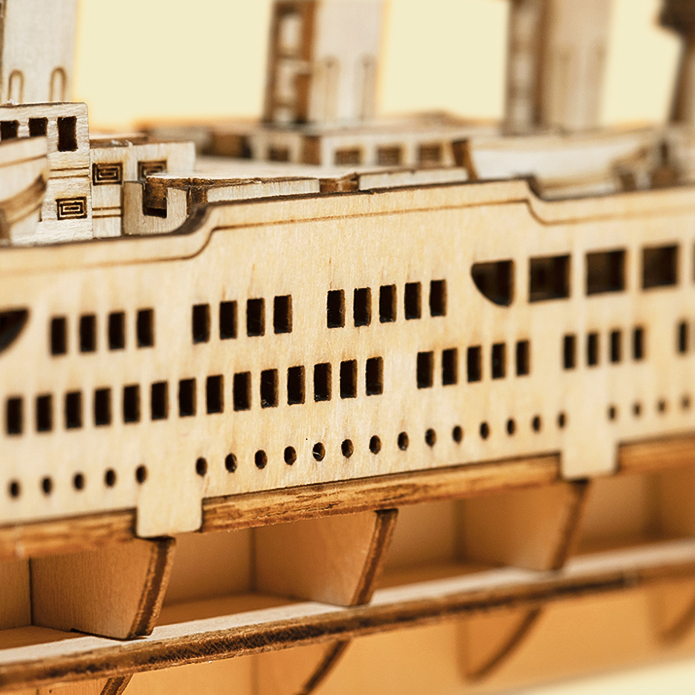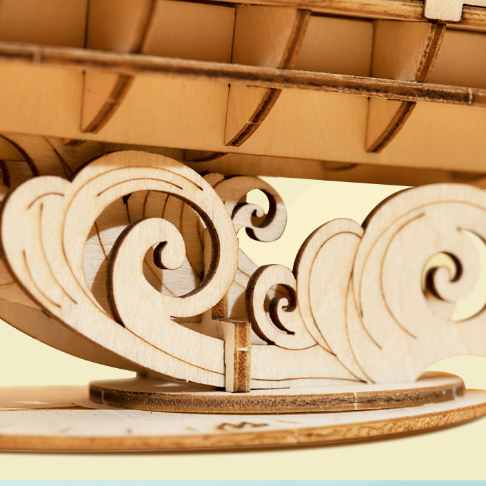Эти наборы для сборки кораблей изготовлены из высококачественной древесины. Высокоточная лазерная резка обеспечивает гладкую поверхность деревянных пазлов без заусенцев и выступов.