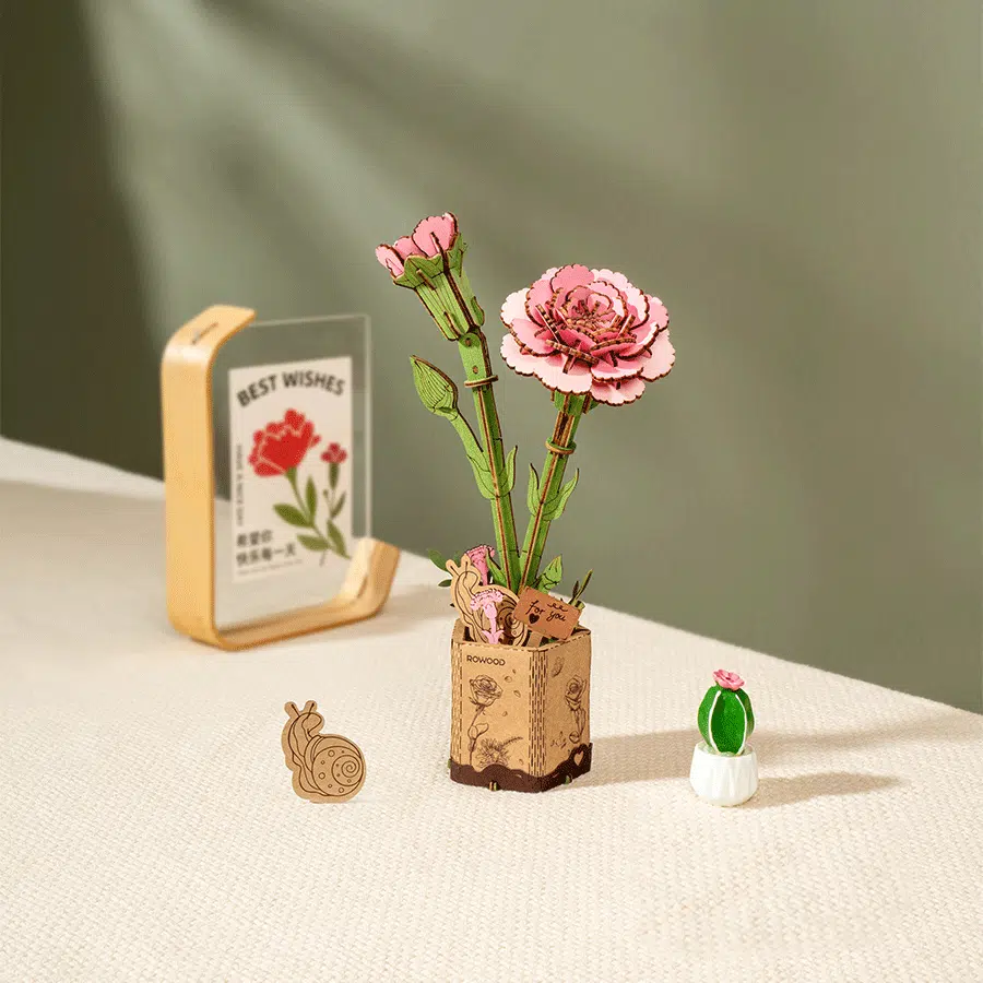 МОДЕЛЬ РОЗОВОЙ ГВОЗДИКИ — Раскройте свой творческий потенциал благодаря гибкому стеблю, который позволит вам поместить его в крафт-бумажный горшок или гармонично сочетать с другими цветами из серии Wooden Bloom Craft, создав потрясающий букет, который будет пышно стоять в вазе.